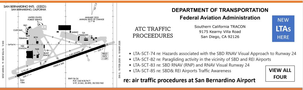 Our name as of September 2024, The Southern California Aviation United Working Group, was chosen to differentiate our site from any other. SCAUWG.ORG has no association with Southern California Airspace Working Group (SCAUWG), Additionally, this was clearly defined and announced by John Ringle, SCAUWG Co-Chairman to those who attended SCAUWG's public meeting on Jan. 14, 2025. The SCAUWG group preferring to discuss only Airspace Issues, never produced, maintained, contributed to, or financed the SCAUWG.ORG site. Rather, SCAUWG.ORG is a one-stop platform featuring Pilot Resources, Aviation Education, Curated News, Commentary, Airspace Issues, Airport Data, Airport Surface Safety, Flight Planning Applications, and Airport Advocacy. produced and maintained independently. Proceeding forward (from September 2024) the Southern California Aviation United Working Group wishes SCAUWG (the group) the best of continued success and looks forward to continuing the publication of group achievements, as it does for other groups and associations as well.