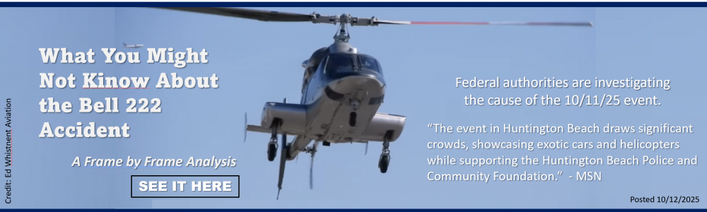 04/25/2022 PILOTS PUSH FOR HELICOPTER WAKE-TURBULENCE AWARENESS - SAFETY - From AOPA - "A group of helicopter pilots and aviation safety professionals have come together to research and share the importance of helicopter wake-turbulence safety with the aviation community. While long known to exist, the aerodynamic details of helicopter wake turbulence are not fully understood, or documented. Recent accidents and incidents inspired a new push to educate all pilots—both fixed-wing and rotorcraft—about the hazard created for nearby aircraft when helicopters are generating lift near runways and taxiways." Read More Here.