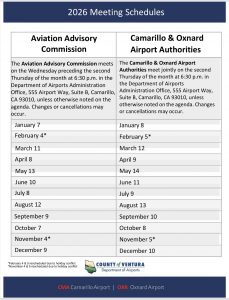 If you select this option, you will receive all agendas and meeting information for both the Aviation Advisory Commission and Airport Authorities for Camarillo and Oxnard airports.
