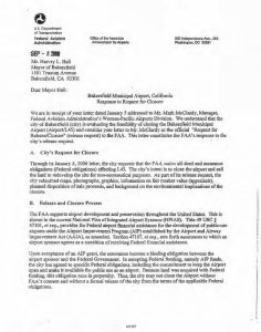 02/04/2026 A Mayor of Bakersfield at the time (2006) petitioned the FAA to close Bakersfield Airport and allow a redevelopment project. The scenario closely parallels the circumstance at Whiteman Airport. The FAA answer closely follows issued FAA guidance for deciding these types of requests when the airport has not satisfied a grant "assurance," the obligation the recipient agrees to when the grand is accepted. There are other airports that also contribute to precedent setting examples. This is good reading. View it Here